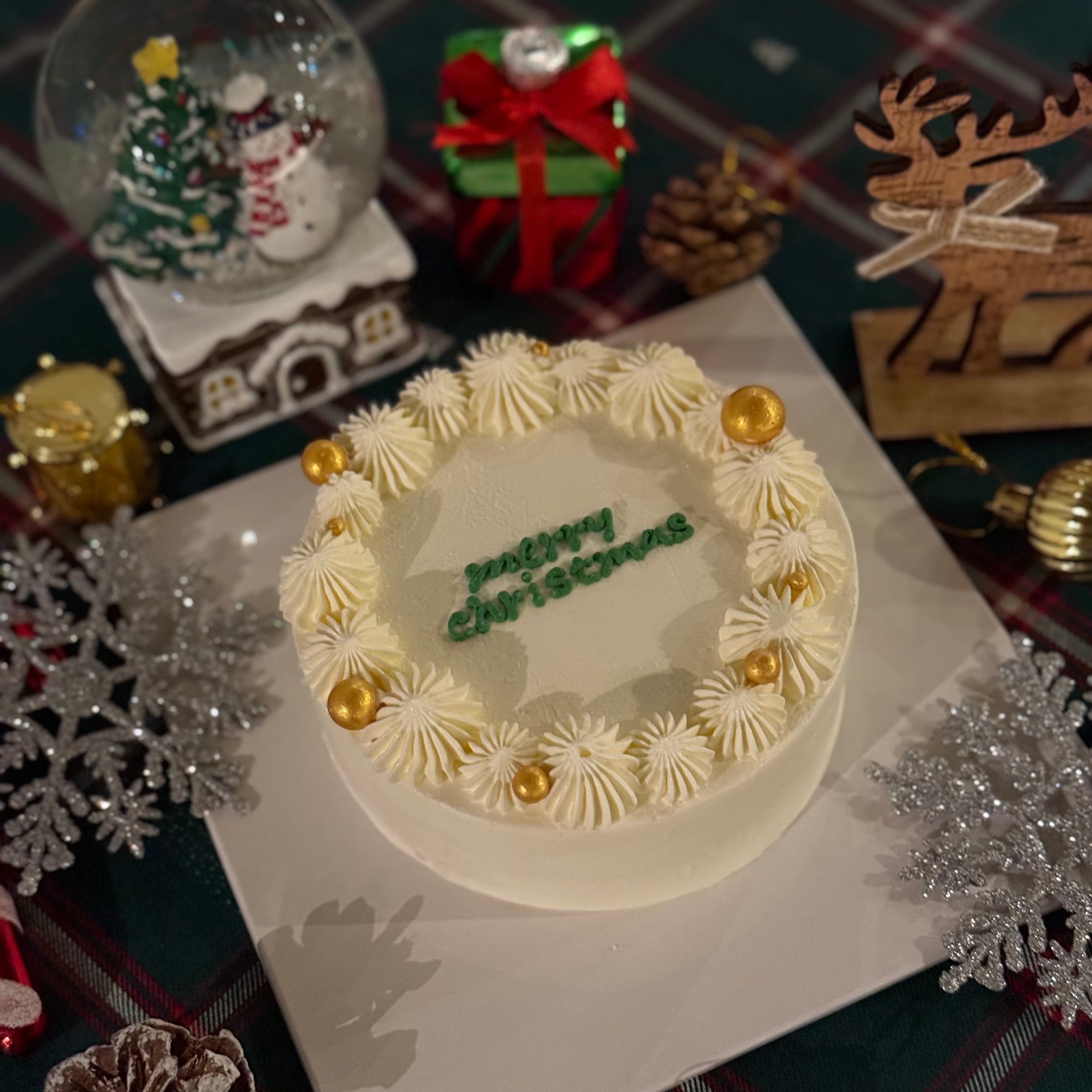 ホワイトベースのケーキゴールドのアラザンを散りばめた大人シンプルなデザインです♡